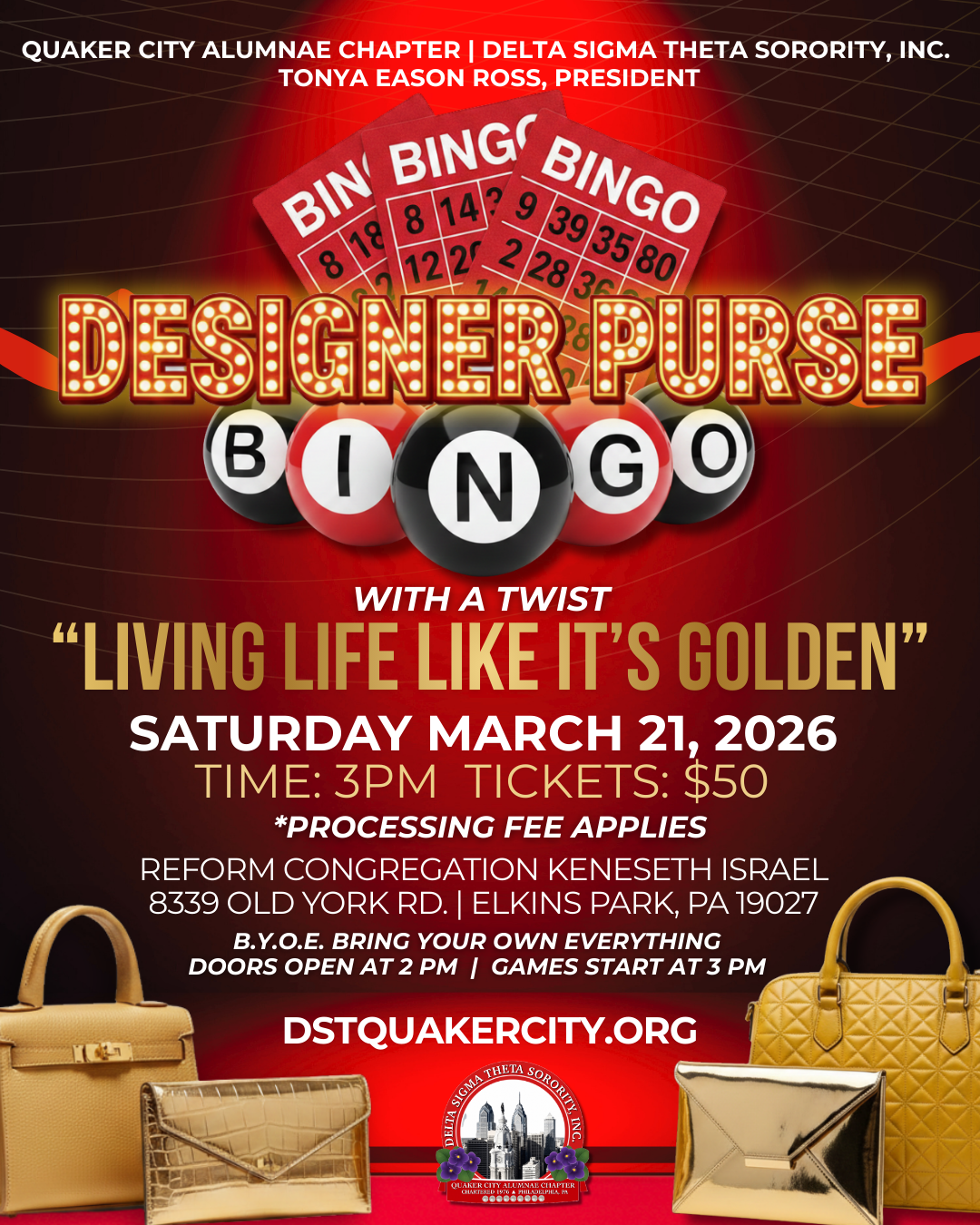 Join the Quaker City Alumnae Chapter of Delta Sigma Theta, Inc. for the 2026 installment of our annual Designer Purse Bingo w/a Twist on Saturday, March 21, 2026 @ 3:00pm.